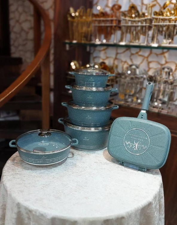 سرویس قابلمه 10 پارچه لایف اسمایل مدل FLCM10 از محصولات باکیفیت و زیبای برند معتبر Life Smile میباشد. این سرویس از چهار عدد قابلمه دربدار در سایزهای 20، 24، 28 و 32 سانتیمتر و یک عدد تابه دربدار در سایز 28 سانتیمتر تشکیل شده است. ساختار بدنه سرویس از آلومینیوم ریختهگری شده با روکش گرانیتی بوده و دارای پایه القایی میباشد. استفاده از جنس آلومینیوم در ساخت این محصول موجب انتقال بهتر و توزیع یکنواخت حرارت در هنگام پخت غذا میشود. سرویس قابلمه لایف اسمایل هیچگونه گاز مضر PFOA را تولید نخواهد کرد و همچنین دارای سطوح نچسب بوده که غذا به آن نخواهد چسبید.