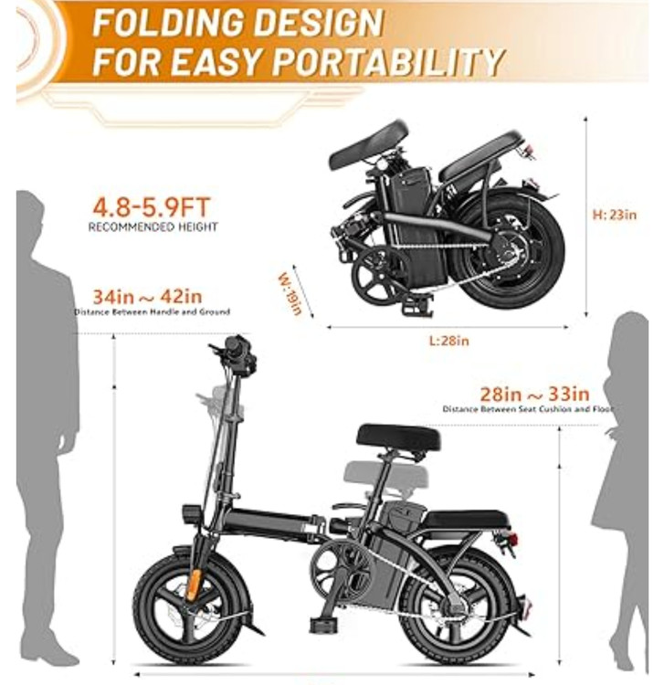 【طراحی تاشو】سایز دوچرخه برقی تا شده APYEAR 28x19x23 اینچ است، اندازه گیری واقعی ممکن است کمی متفاوت باشد. دوچرخه های برقی تاشو به راحتی حمل می شوند و در صندوق عقب ماشین قرار می گیرند و در رفت و آمدهای شهری و مسافرت ها سرگرم می شوند. برای دانشجویان، کارکنان اداری، افراد بازنشسته، مردان و زنان تازه کار مناسب است.