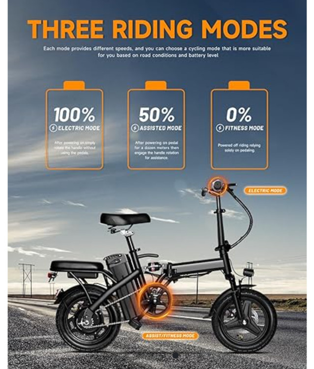 【350W و 3 حالت سواری】موتور 350W براشلس سواری ایمن و کارآمد را با حداکثر سرعت 20 مایل در ساعت تضمین می کند. پس از شارژ کامل، میتوانید 20+ مایل را در حالت کمک پدال طی کنید. این سه حالت سواری را ارائه می دهد: حالت برقی خالص، حالت کمک پدال، و حالت دوچرخه معمولی برای مطابقت با نیازهای مختلف.