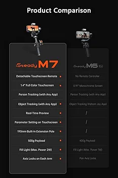 1، iSteady M7; 2، ردیاب هوش مصنوعی پیشرفته با نور پر.