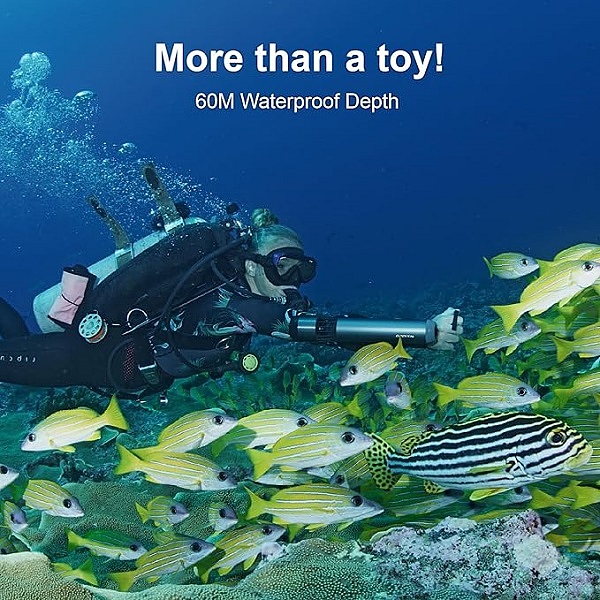 با اسکوتر دریایی Subnado عمیقتر غواصی کنید. این دستگاه در یک بدنه مقاوم از آلیاژ آلومینیوم آنودایزشده قرار دارد و میتواند تا عمق 60 متری پایین برود.